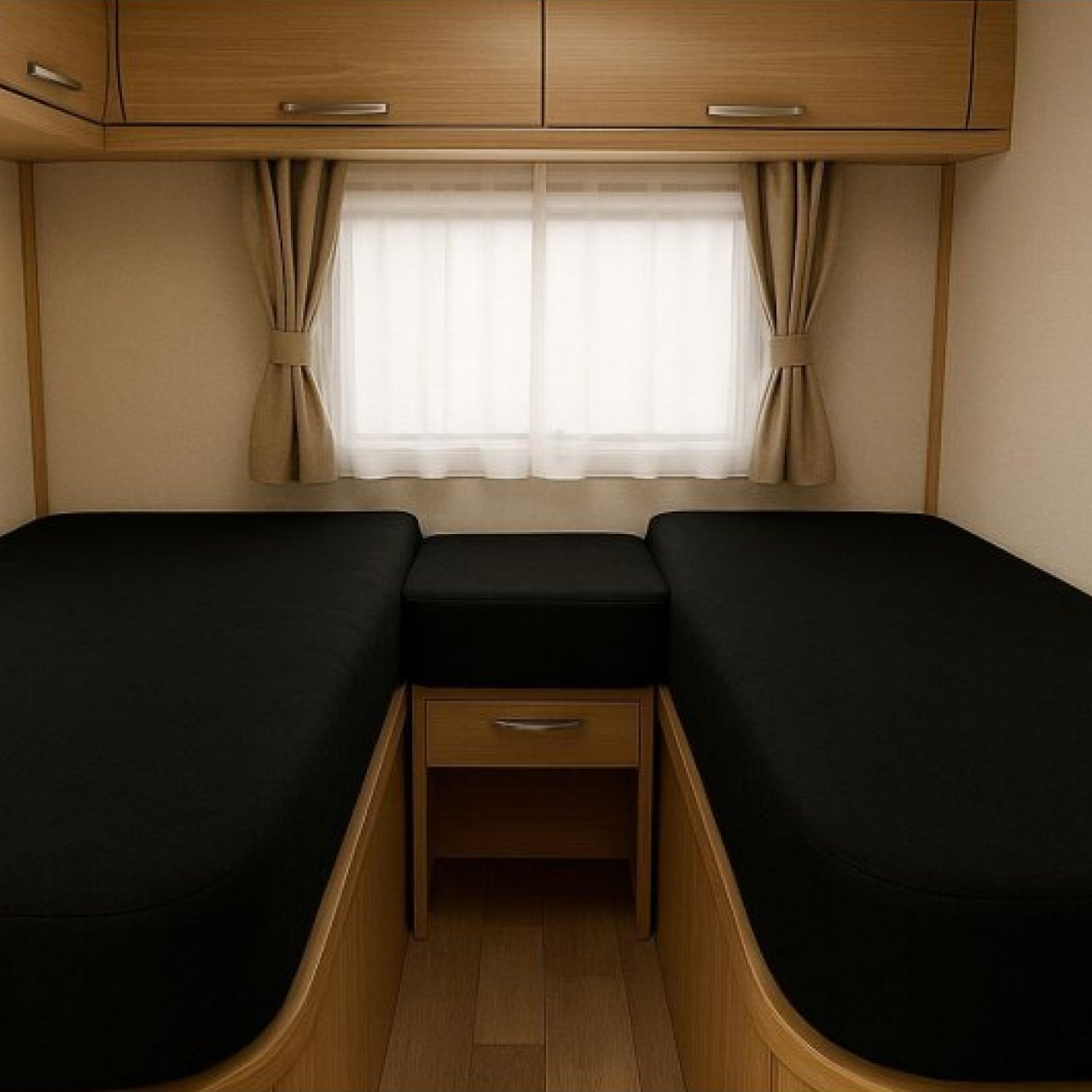 De stof is Oeko-Tex gecertificeerd, wat betekent dat het vrij is van schadelijke stoffen. Zo kies je met een gerust hart voor veilig, duurzaam en comfortabel slapen. De zwarte kleur straalt luxe, rust en moderniteit uit – perfect voor wie houdt van een strak en stijlvol caravaninterieur. Bovendien combineert zwart moeiteloos met vrijwel alle andere kleuren beddengoed en accessoires.
